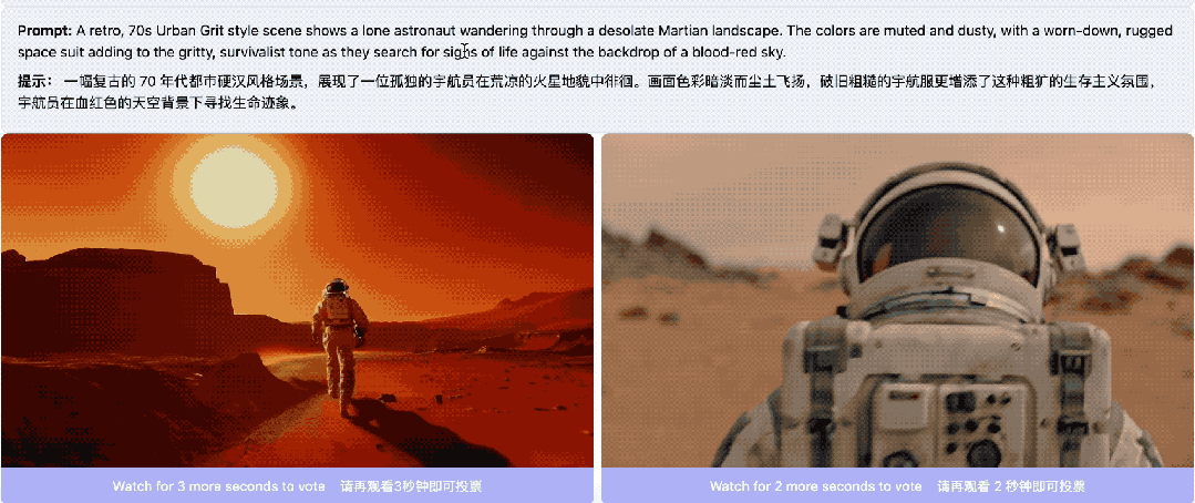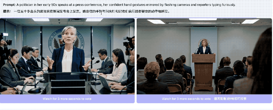 Artificial Analysis的Video Arena的排名机制,是数千名真实用户在完全不知情的情况下,对两段生成结果进行盲测对比得出的Elo体系。